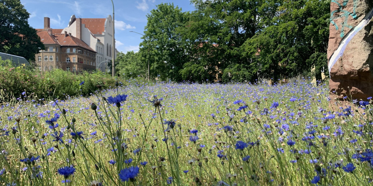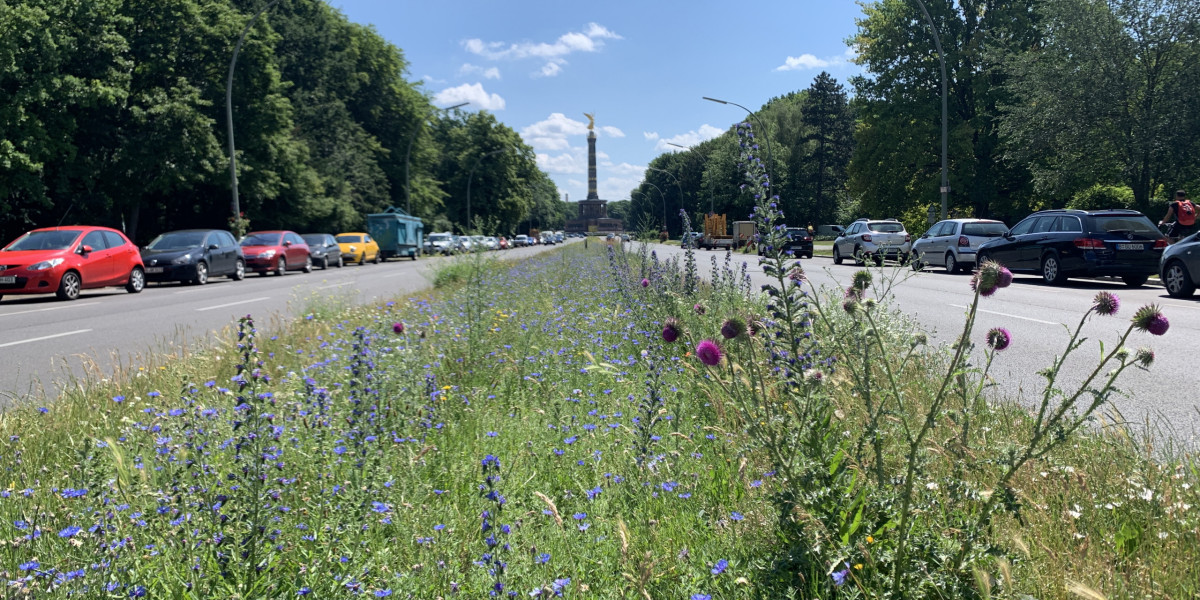 Berlin blüht auf! In Parks, auf Mittelstreifen und Grünflächen schaffen wir Lebensraum für Wildbienen und andere Insekten – damit die bedrohten Bestäuber genügend Futter und eine passende Bleibe finden. Mehr als 90 Blühflächen haben wir mit der Berliner Senatsverwaltung für Mobilität, Verkehr, Klimaschutz und Umwelt schon geschaffen. Hundert und mehr sollen es werden. a