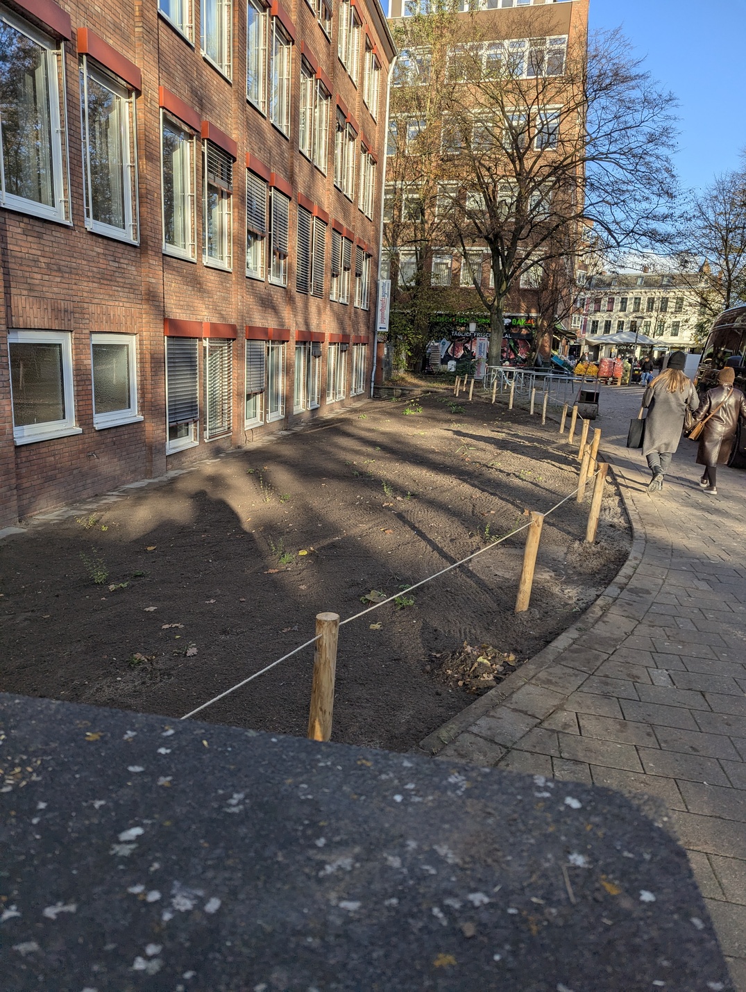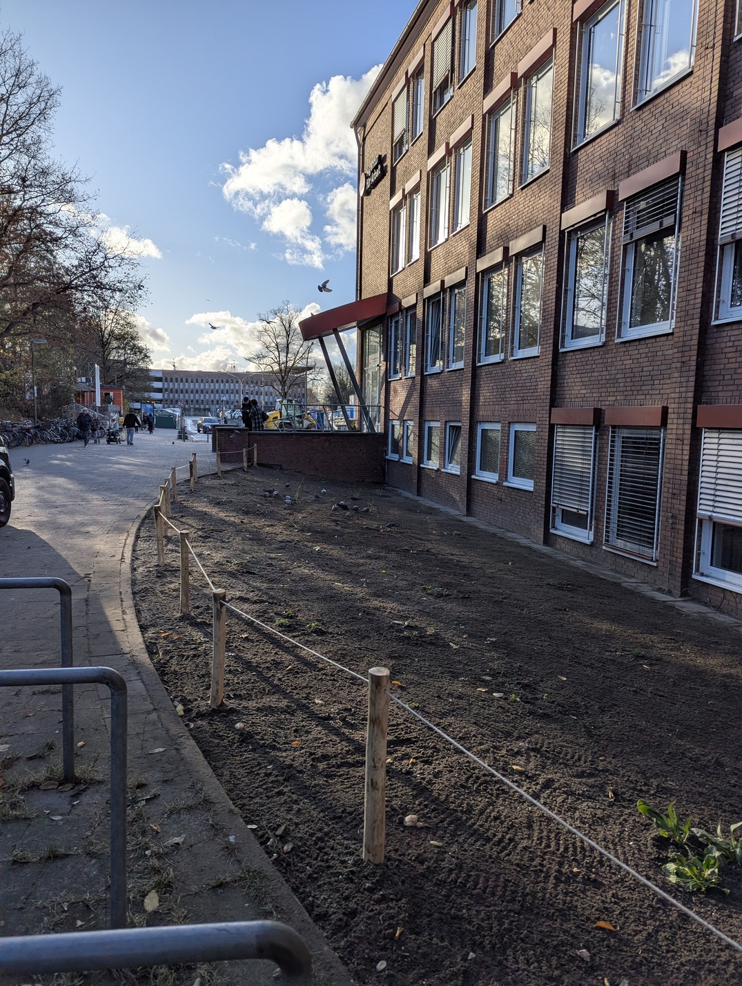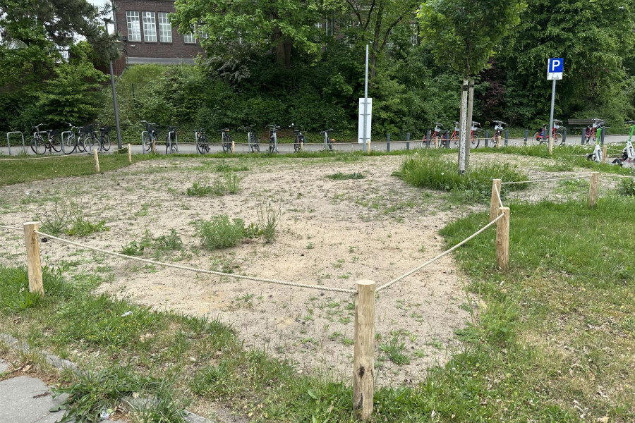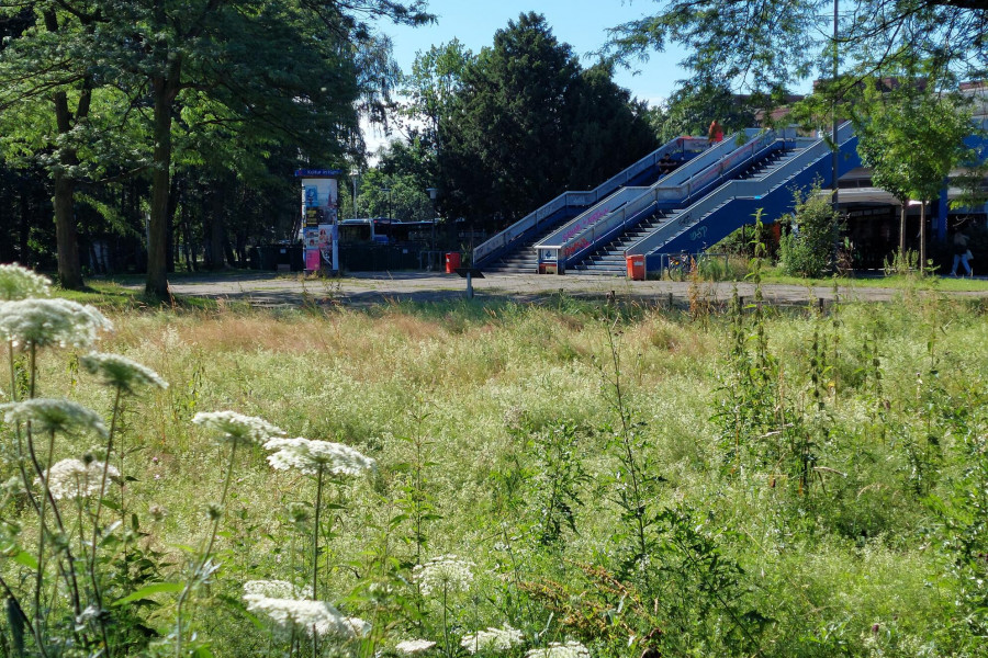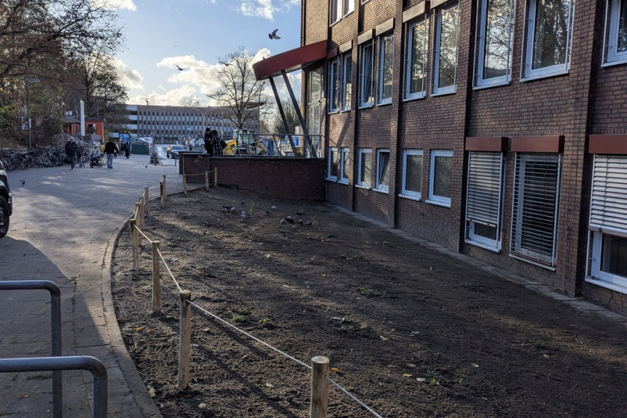 Anlage der Fläche: Herbst 2025Dank der Unterstützung der Adalbert Zajadacz Stiftung konnte im Herbst 2025 eine weitere Blühfläche im Umfeld des S-Bahnhofs Bergedorf angelegt werden. Die zuvor intensiv gepflegte Rasenfläche mit geringem ökologischem Wert liegt an einem stark frequentierten Zugang zum Bahnhof und in unmittelbarer Nähe der Agentur für Arbeit.