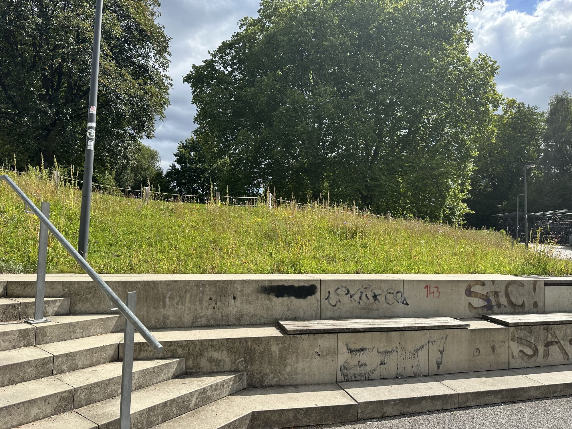 Ergänzend wurden strukturreiche Bereiche geschaffen, die Nist- und Rückzugsmöglichkeiten für Wildbienen bieten. Informationstafeln vor Ort erläutern Passantinnen und Passanten die Bedeutung der Blühflächen für Biodiversität und Bestäuberschutz.