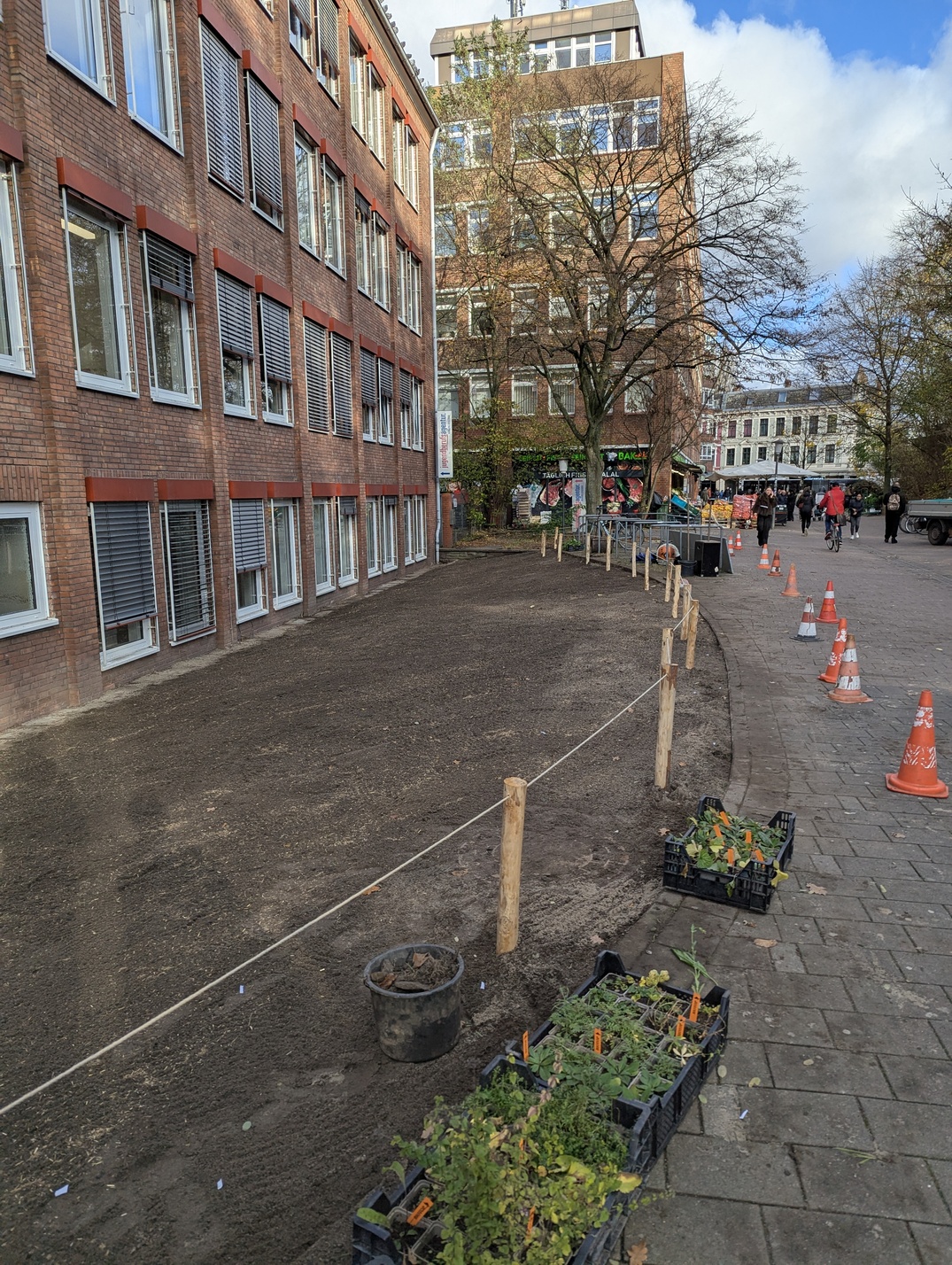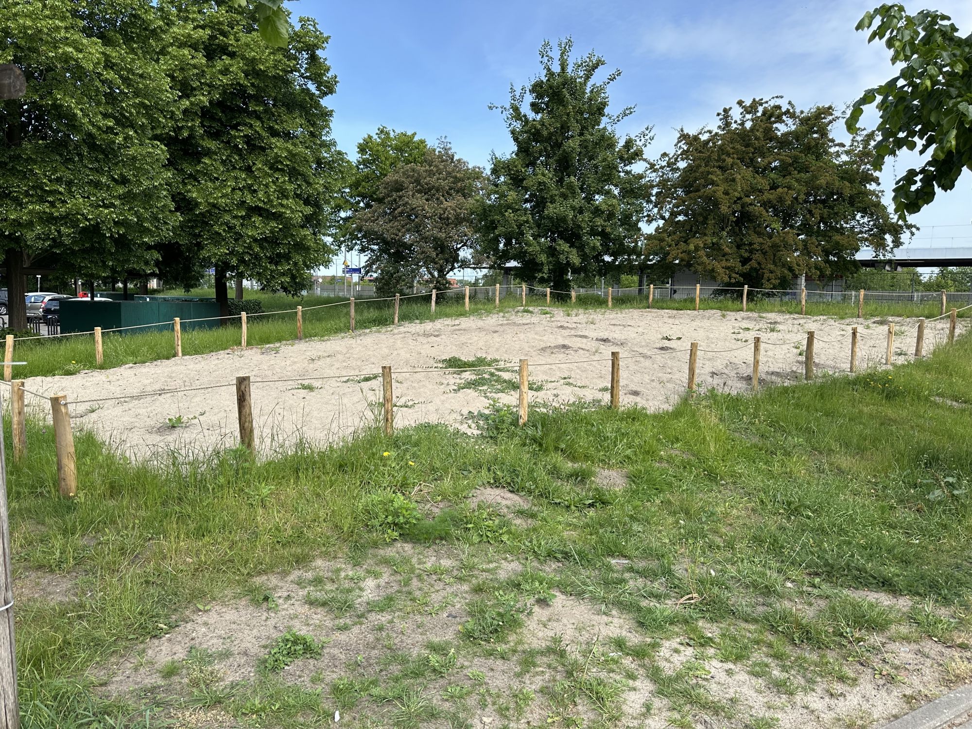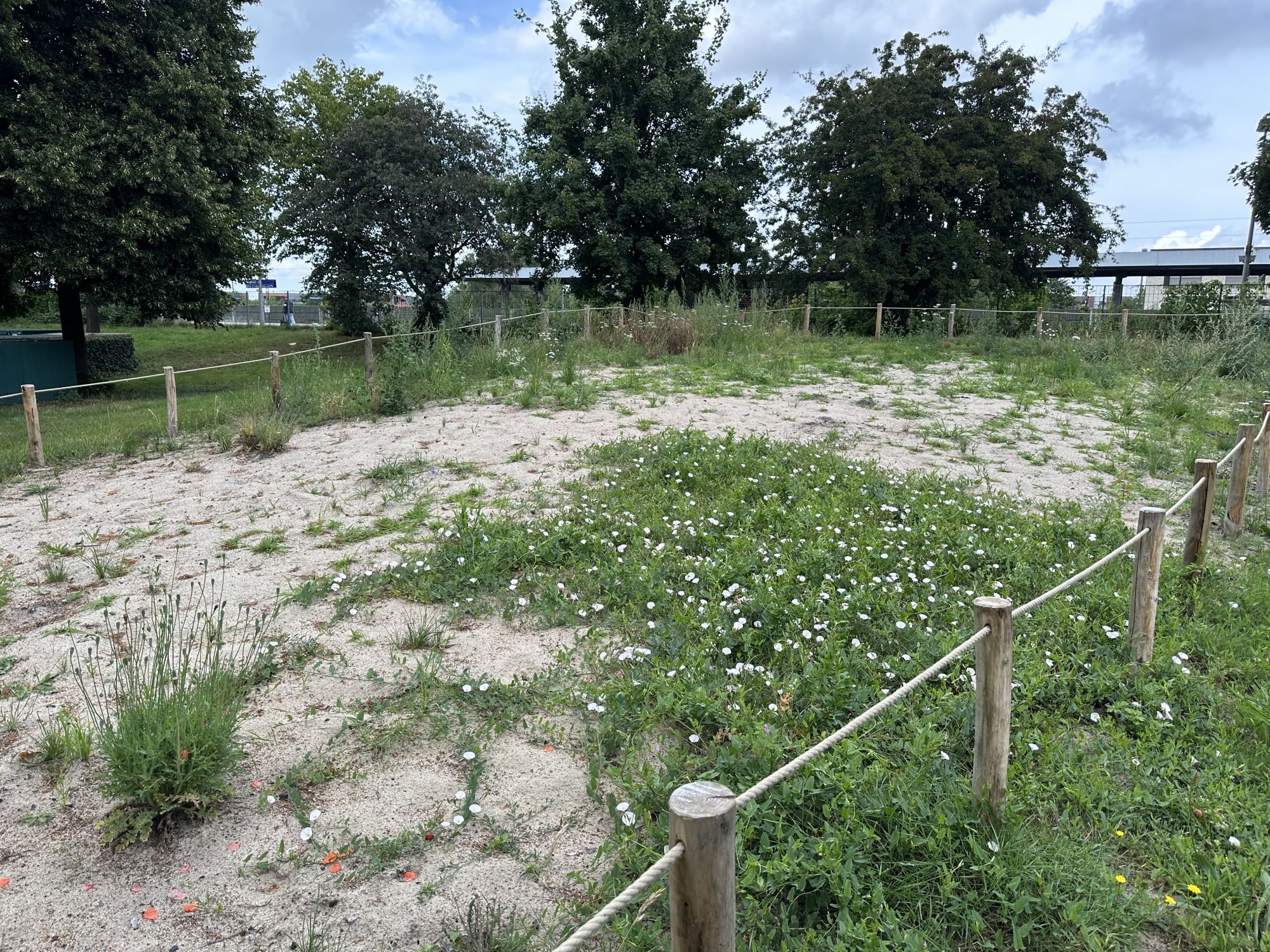 Die Blühfläche ist mit Holzpfählen und Hempexseil abgegrenzt. Eine Informationstafel wird künftig über die Bedeutung von Wildbienen und blütenreichen Lebensräumen informieren. Ab dem Frühjahr 2026 werden die ersten Pflanzen blühen.