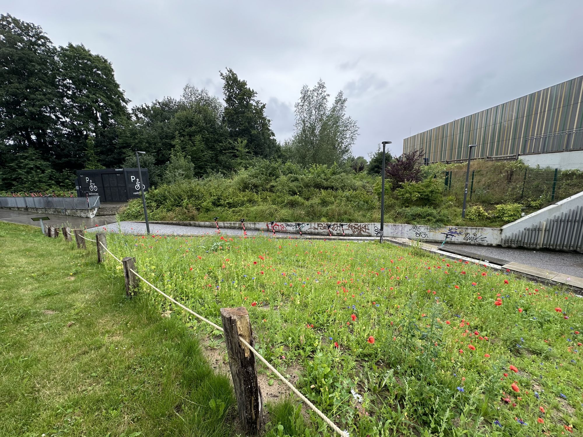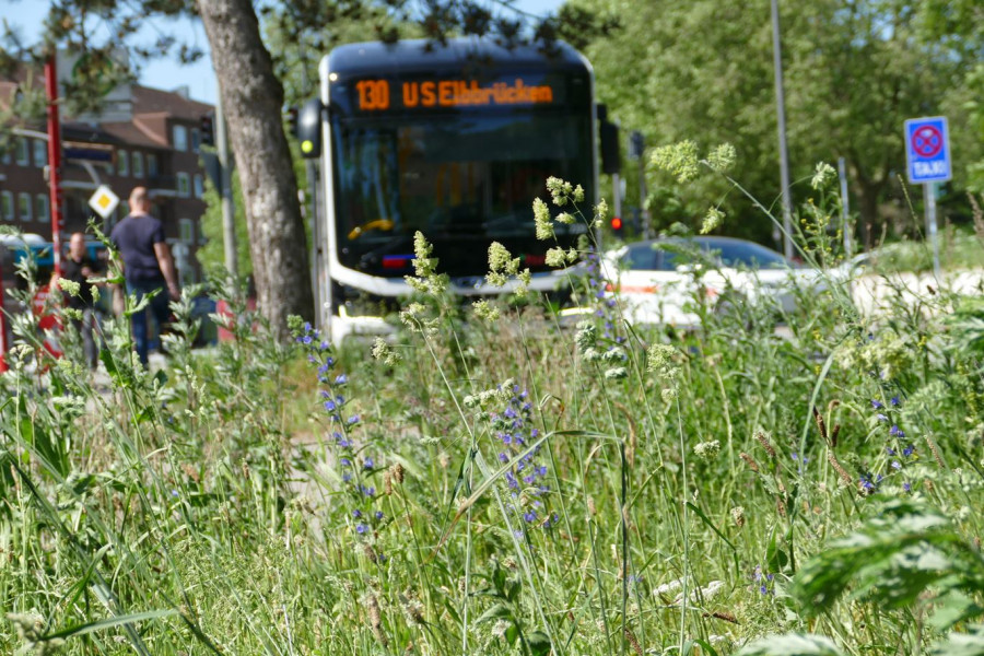 Anlage der Fläche: Frühjahr 2026Im Umfeld der Haltestelle Rauhes Haus wird im Frühjahr 2026 eine bislang artenarme Grünfläche in eine blütenreiche Wildblumenwiese für Wildbienen und andere bestäubende Insekten umgestaltet. Ziel ist es, das Nahrungsangebot für Bestäuber in der Stadt zu verbessern und neue Lebensräume im urbanen Raum zu schaffen.