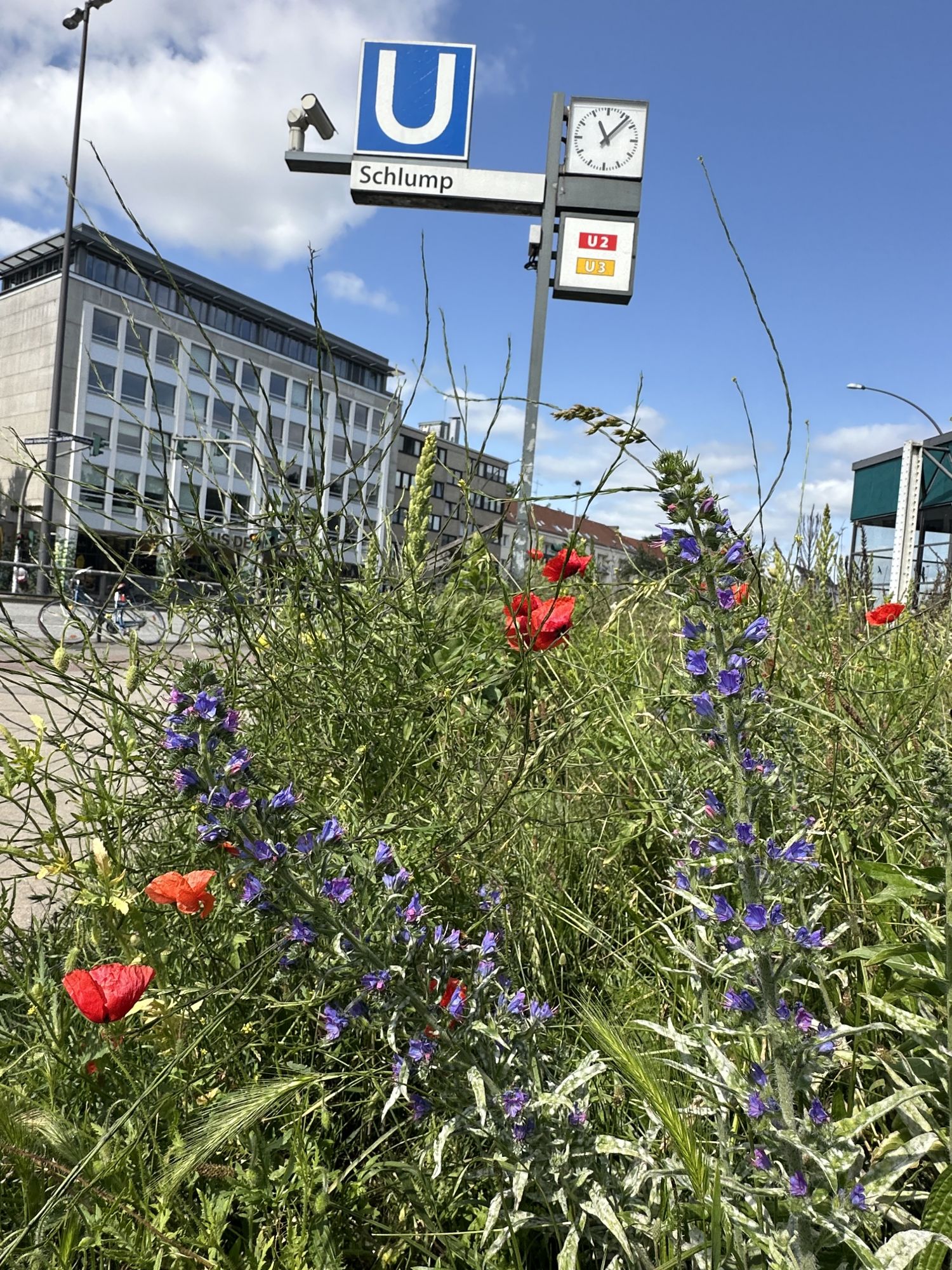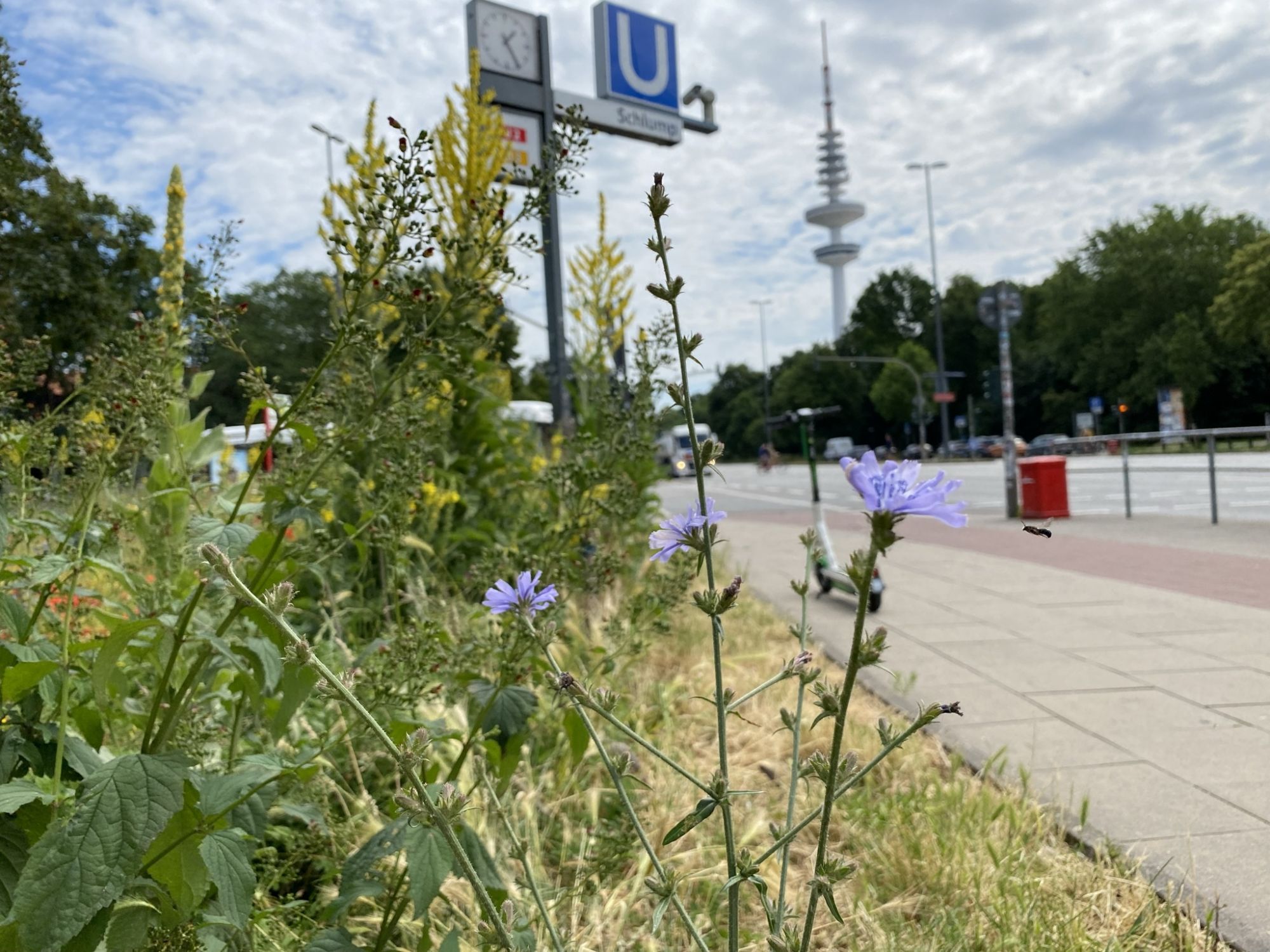 Anlage der Fläche: 2020Die Blühfläche an der Haltestelle Schlump wurde gemeinsam mit dem Netzwerk Buntes Band Eimsbüttel angelegt, das die Fläche bereits zuvor als Patenschaft betreute. Mit Unterstützung der Deutschen Wildtier Stiftung und des hvv wurde die Fläche 2020 ökologisch aufgewertet. Dafür wurde die Grasnarbe entfernt, der Boden durch das Einbringen von Sand abgemagert und mit heimischen Wildstauden bepflanzt. Insgesamt wurden 15 Stauden ergänzt.
