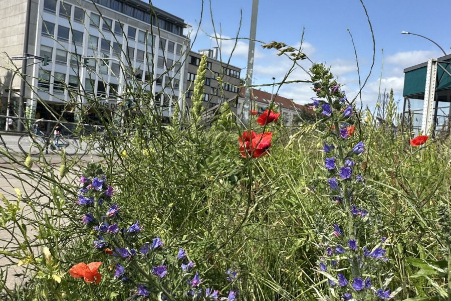Trotz der stark frequentierten Lage haben sich die Flächen zu wertvollen Lebensräumen für Insekten entwickelt und zeigen, welches Potenzial auch innerstädtische Standorte für Biodiversität bieten.