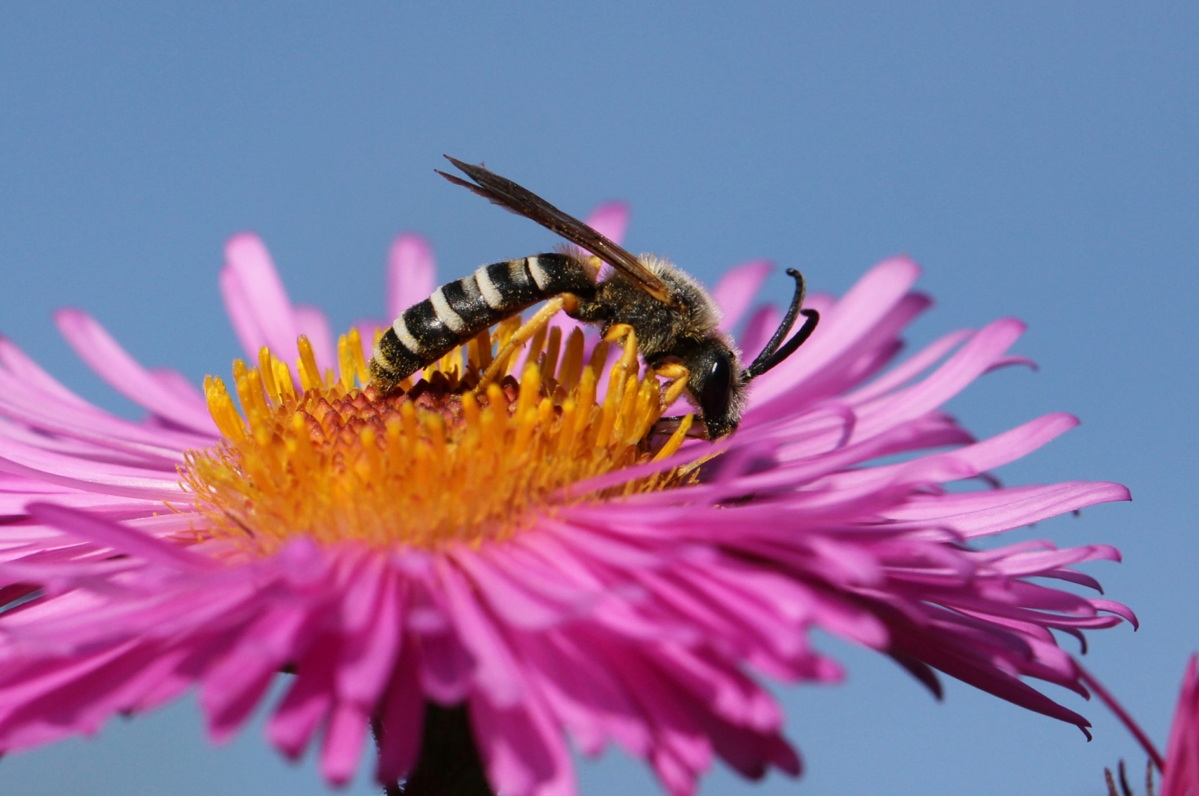 Natürlich treten Bienen auch als reine Blütenbesucher auf. Bienenmännchen, zum Beispiel, sammeln gar keinen Pollen, sondern besuchen Blüten ausschließlich zum Nektarsaugen. In ihrem Pelz transportieren sie natürlich auch Pollen und werden damit zu echten Bestäubern.