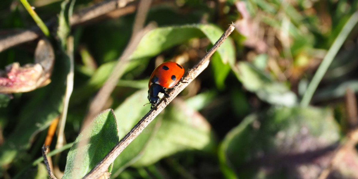 Larve des Siebenpunkt-Marienkäfers, beobachtet auf der Blühfläche der Freien Universität Berlin. Die Insekten können in verschiedenen Entwicklungstufen (Adult, Ei, Larve oder Puppe) erfasst und hochgeladen werden. Foto: S. Lokatis