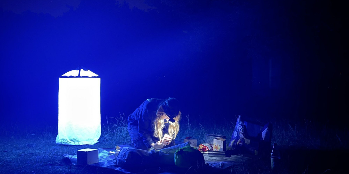 Nachtfalterbeobachtung mit einer Lichtfalle bei der Blühfläche in der Schönholzer Heide (Pankow). Foto: J. Michalski
