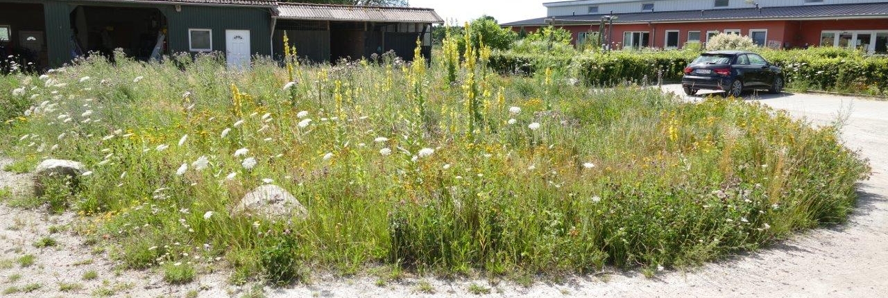 Die Fläche zeigt, wie schön und vielfältig naturnahe Begrünung sein kann – und gibt zugleich Anregungen für die eigene Gestaltung von Balkon oder Garten.