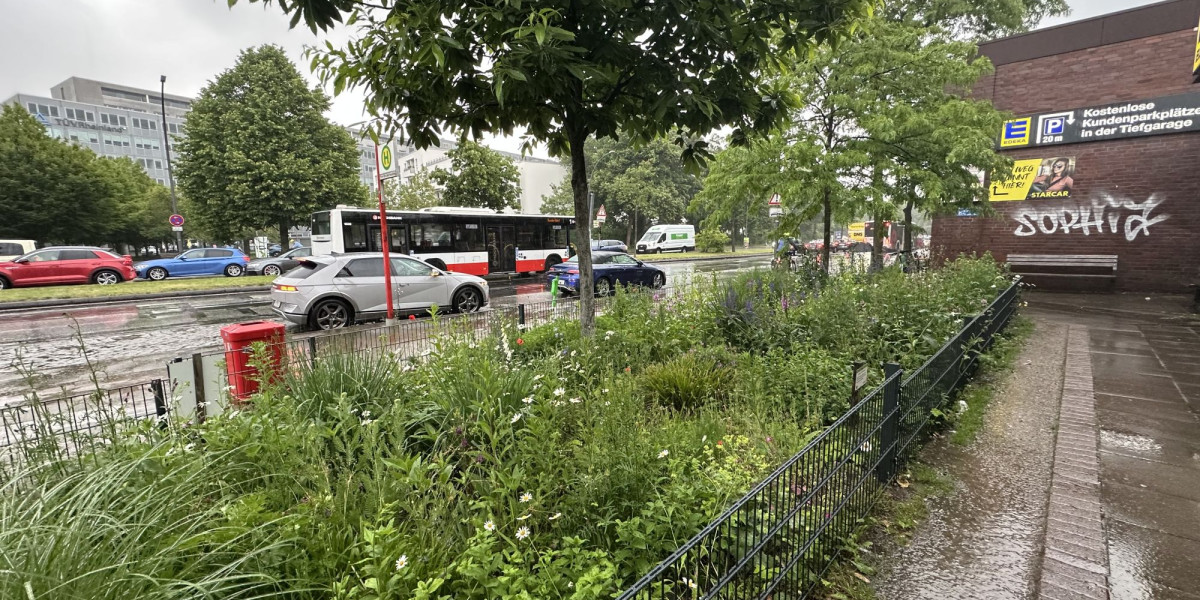 Seit 2021 konzentrieren wir uns zusammen mit dem Hamburger Verkehrsverbund verstärkt darauf, an repräsentativen Haltestellen Nahrungs- und Nistangebote für Insekten zu schaffen. Diese Flächen dienen als „Trittsteine“ für Wildbienen auf ihrem Weg zu weiteren Nahrungsquellen und tragen zum Biotopverbund bei.