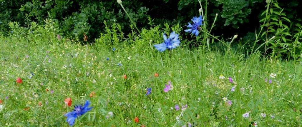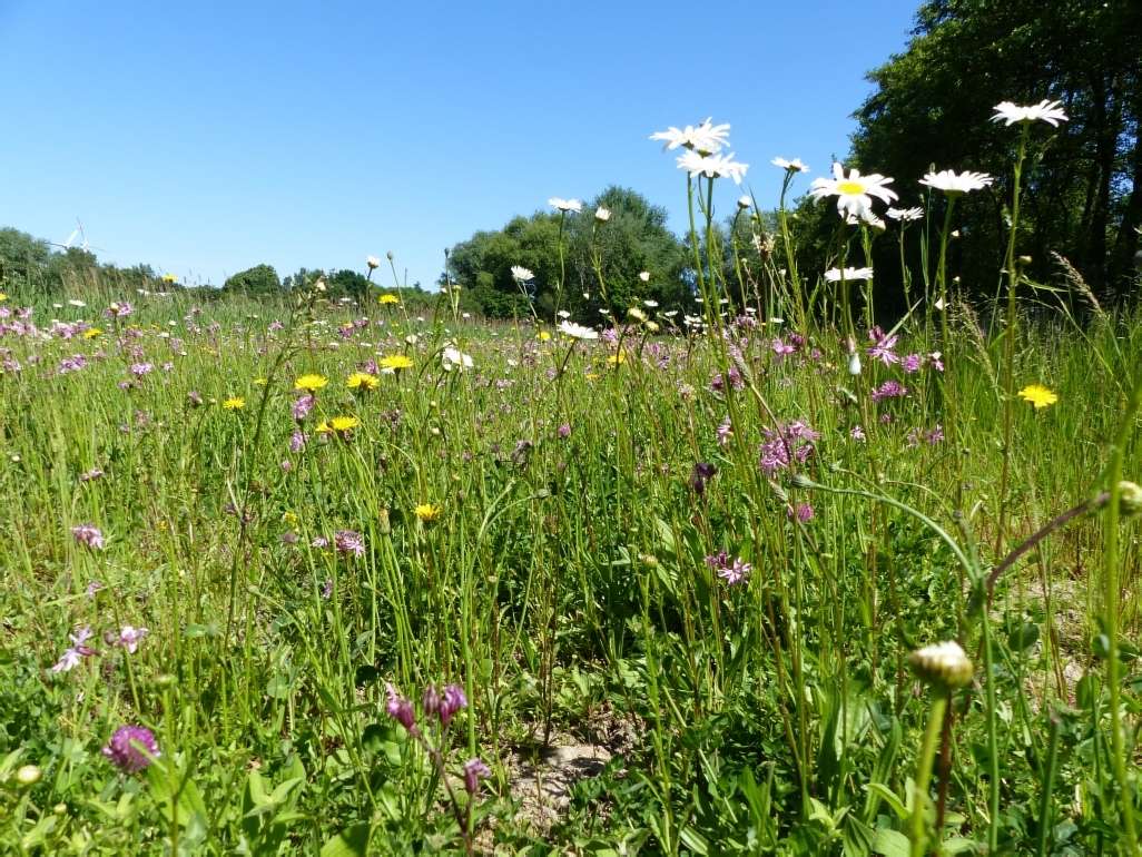 Durch die Aussaat von regionalem Wildblumensaatgut entstehen zusätzliche blütenreiche Lebensräume. Pflege und Weiterentwicklung der Flächen sichern langfristig ihr ökologisches Potenzial.