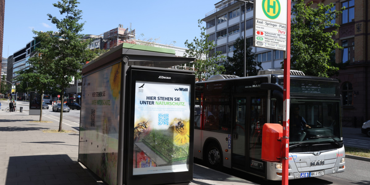 Es ist eine Kooperation des Unternehmens Wall GmbH und der Deutschen Wildtier Stiftung und ein in Deutschland bislang einzigartiges Projekt: 2022 wurde erstmals der ökologische Mehrwert kleiner Gründächer auf Bushaltestellen in Großstädten wissenschaftlich untersucht. Wir konnten dabei 49 verschiedene Wildbienen- und Wespenarten auf nur zwei begrünten Fahrgastunterständen in Hamburg nachweisen. Darunter seltene und bedrohte Arten sowie eine Wespenart, die zuvor noch nie in der Hansestadt gefunden wurde.