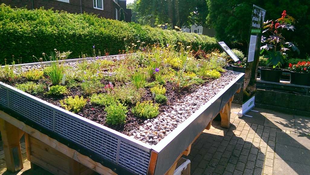 Ergänzend entstehen eine Wildblumenwiese und ein anschauliches Gründach-Modell. Dieses zeigt, welche Pflanzen sich für wildbienenfreundliche Dachbegrünungen eignen und gibt praktische Anregungen für Privatpersonen und Unternehmen.