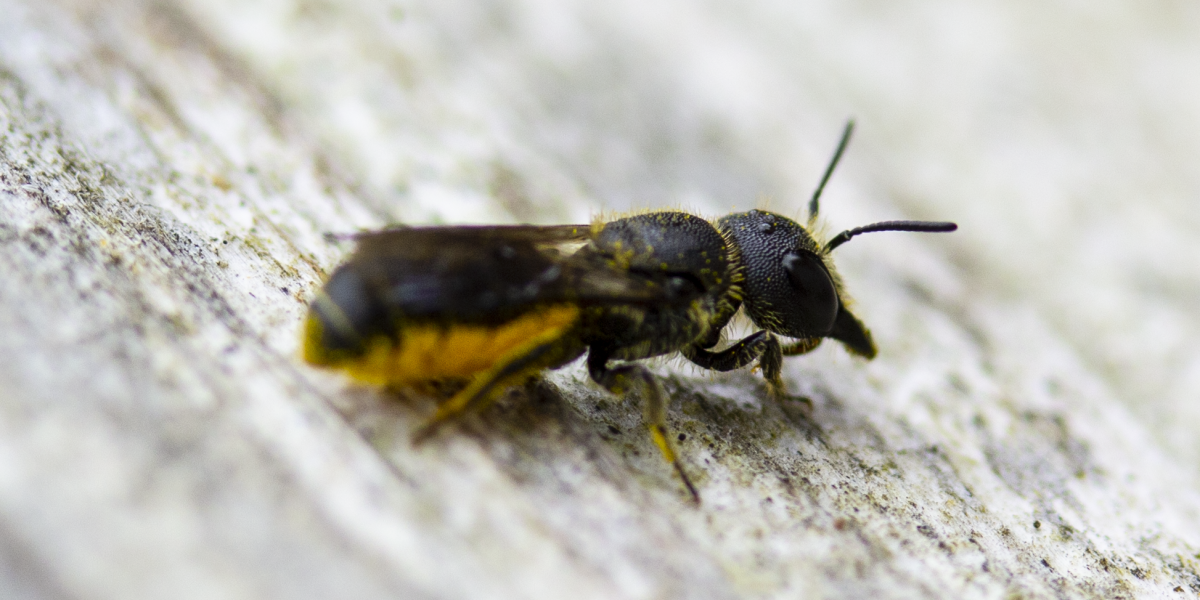 • Löcherbienenmännchen kann man an dem gekrümmten Hinterleibsende erkennen. Foto: Will George / CCBYNC2.0