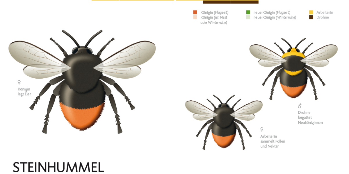 Somit sollte zum Schutz der Steinhummel Gärten und Balkone strukturreich gestaltet werden und reichlich Nahrungs- sowie Nistmöglichkeiten angeboten werden.