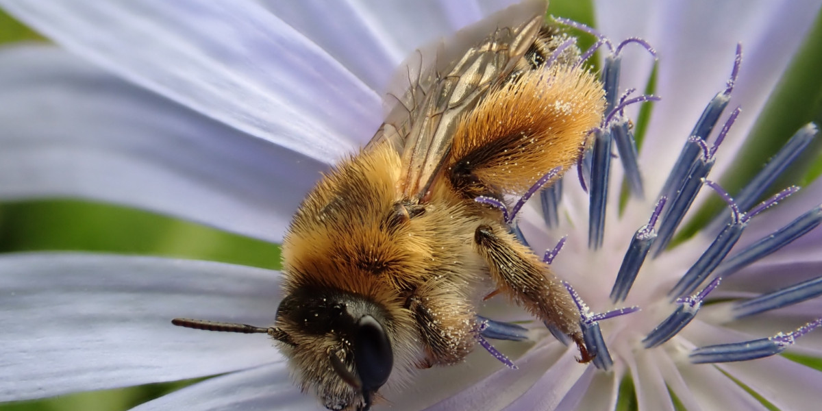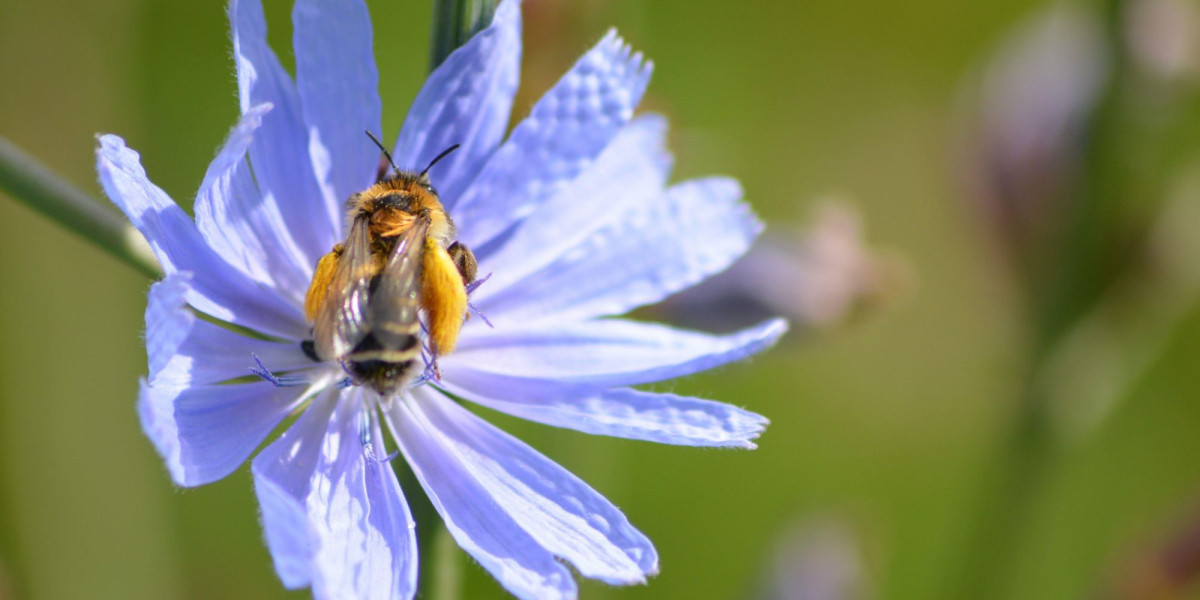 Die Wegwarten-Hosenbiene macht sich die Taschen voll