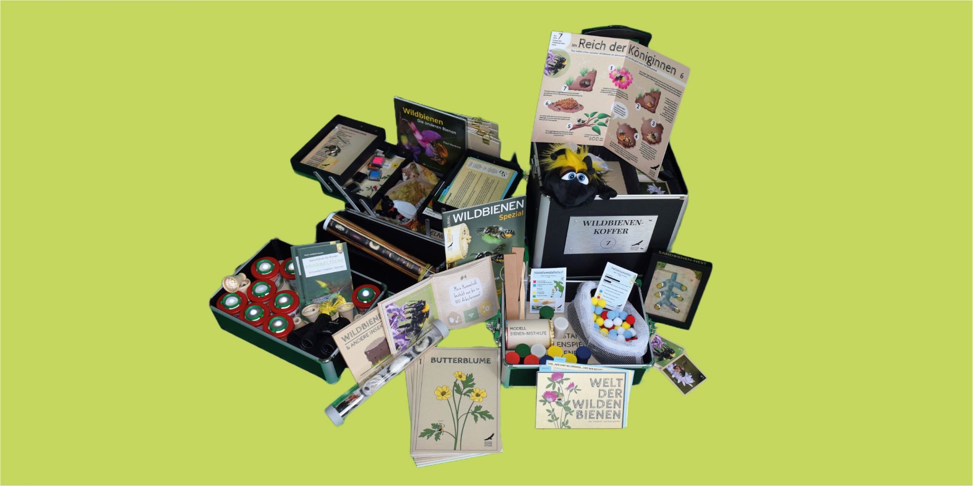 Ein Bildungskoffer enthält Informationen, Modelle, Spiele und Bastelanleitungen zu den wichtigsten Wildbienen-Themen, von Vielfalt und Aussehen, Nist- und Nahrungsansprüchen bis hin zu Artenschutz. Durch Anleitungen und Beschreibungen der Materialien sollten Pädagoginnen und Pädagogen idealerweise in der Lage sein, einen oder mehrere Projekttage ohne die Präsenz von Mitarbeitenden der Deutschen Wildtier Stiftung durchzuführen. Eine detaillierte Beschreibung der Inhalte erhalten Sie auf Anfrage von Anja Proske.