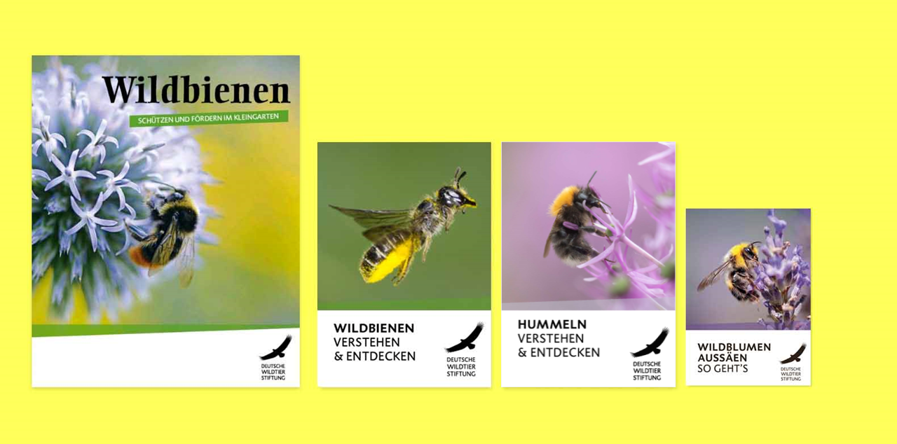 Broschüren rund um die Wildbiene können Sie auf der Seite der Deutschen Wildtier Stiftung kostenfrei als PDF herunterladen oder gedruckt bestellen. Bei Anfragen nach größeren Mengen kontaktieren Sie uns sehr gerne.