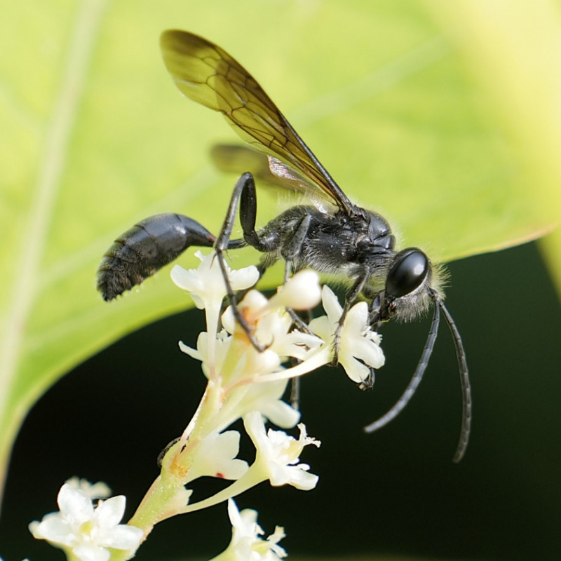 Ein weiterer, wenig bekannterer Neueinwanderer ist die Amerikanische Mörtelwespe, Sceliphron caementarium. Diese prächtige schwarz-gelb gefärbte Art trägt ebenfalls Spinnen ein und ist südlich der Alpen fast überall zu finden. In Deutschland tritt sie bisher noch sehr punktuell auf. Doch ein aktueller Fund im Hamburger Hafen aus dem Jahr 2021 zeigt, dass die Art das Potenzial hat, bald ganz Deutschland zu besiedeln.
