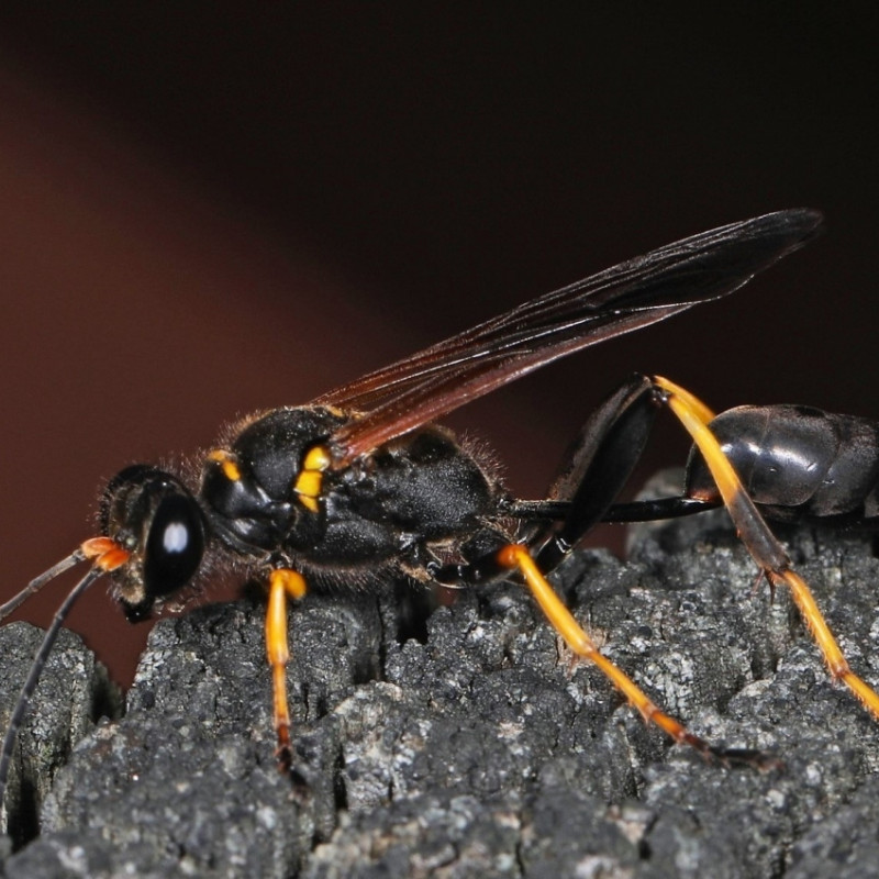 Neben Hornissen gibt es eine Reihe weiterer exotischer Wespenarten, die sich ebenfalls bereits in Deutschland etabliert haben. Die bekannteste dürfte die Orientalische Mörtelwespe sein, eine sehr auffällige Art mit einer überdimensionierten Wespentaille. Sie ist manchen Menschen dadurch bekannt, dass sie ihre Lehmzellen gerne im Wohnzimmer hinter dem Vorhang oder im Bücherregal an die Bücher anheftet. Als Höhlenbrüter freut sich die aus Südostasien stammende Grabwespenart sehr über regengeschützte menschliche Behausungen. Sie wurde bereits Ende der 1970er Jahren nach Österreich eingeschleppt, erreichte vor rund 20 Jahren Deutschland und hat sich inzwischen bundesweit ausgebreitet. Ihre charakteristischen zigarrenförmigen Brutröhren werden dicht nebeneinander angelegt und mit Spinnen als Larvennahrung gefüllt. Die etwa zwei Zentimeter messenden braungelben Insekten können nicht stechen und sind daher völlig harmlos.