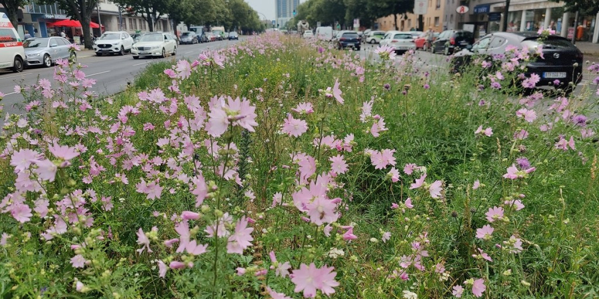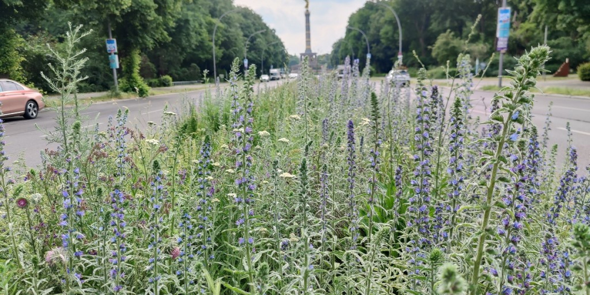 Blühfläche Otto-Suhr-Allee im Juni 2024, Bezirk Charlottenburg-Wilmersdorf. Foto: T. Bluth