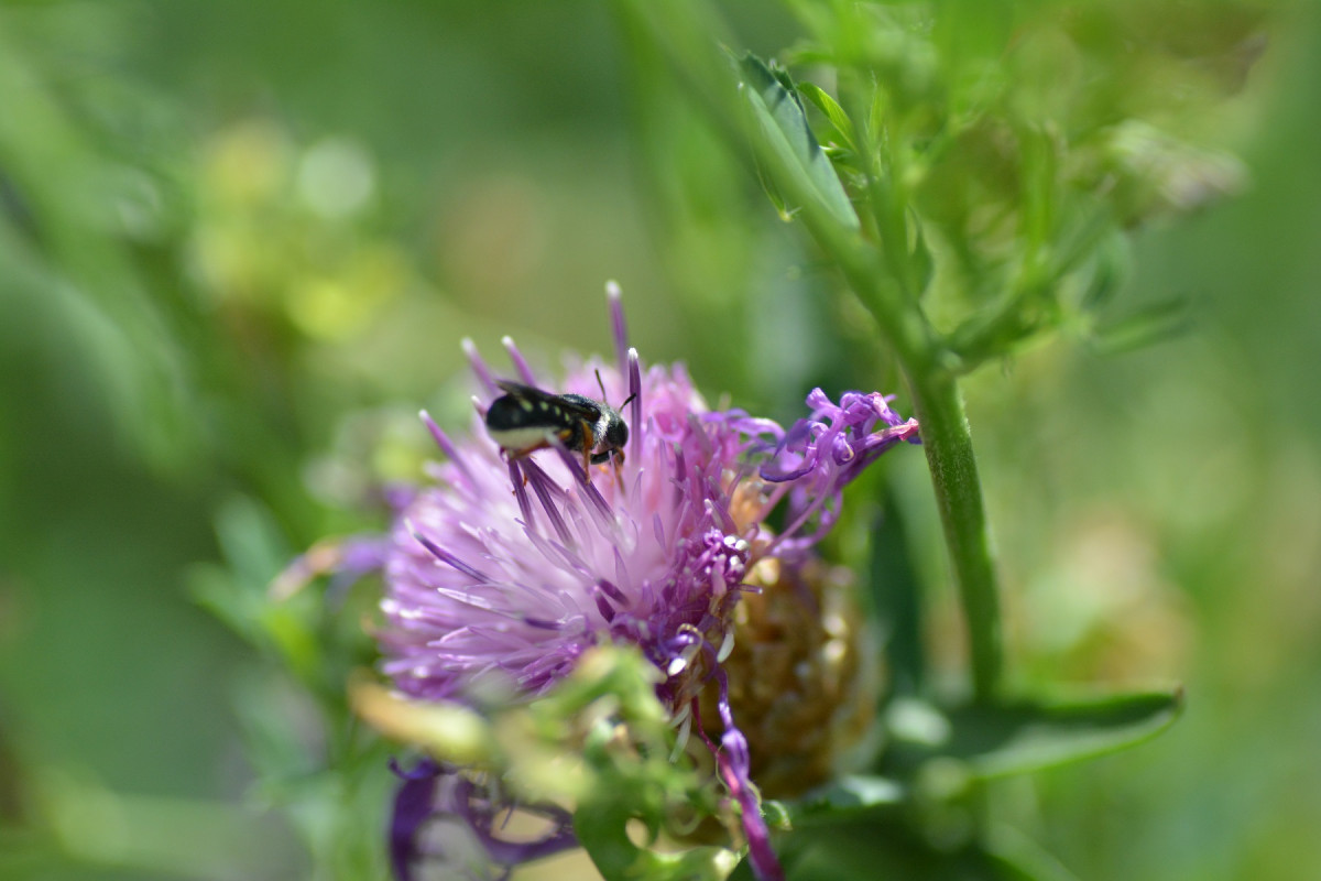 Besonders seltene Arten wie die Östliche Zwergwollbiene (Pseudoanthidium nanum) profitieren von der Blütenvielfalt.