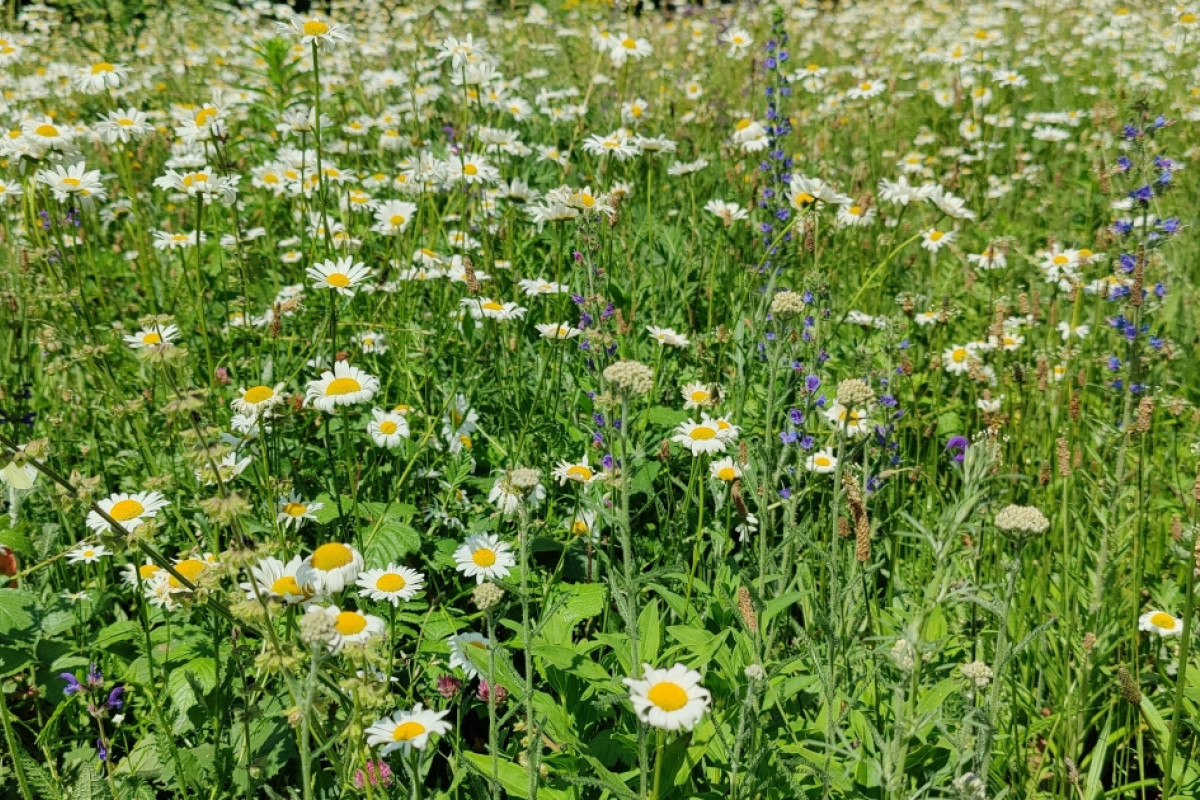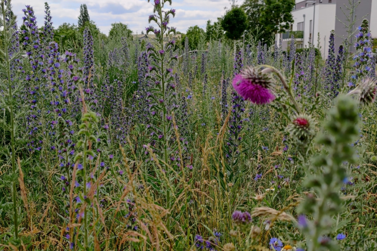 Die Ergebnisse können sich sehen lassen. Die von uns durchgeführte Erfassung der Blühvegetation auf 20 Maßnahmenflächen hat ergeben, dass sich über 90 Prozent der ausgebrachten Pflanzenarten etablieren und zur Blüte gelangen konnten. Das Blütenangebot und die Artenvielfalt wurden im Vergleich zu den umliegenden Grünflächen damit deutlich erhöht.