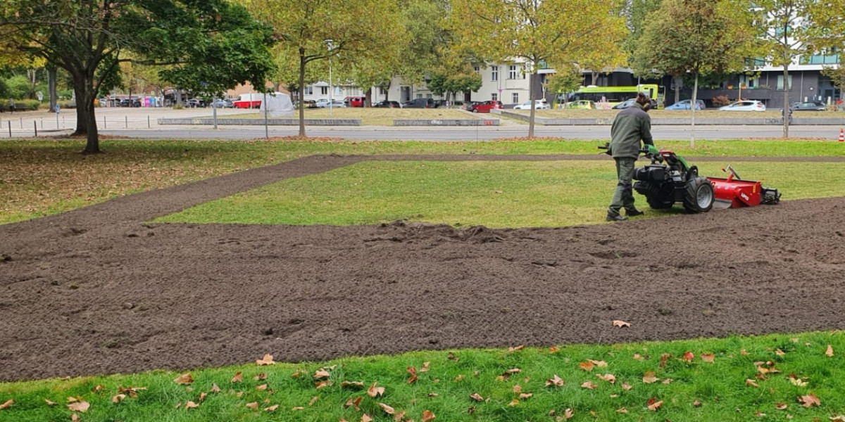 Um ein gutes Saatbett anzulegen, wird zunächst der Boden an einem sonnigen, trockenen und mageren Standort gefräst oder umgegraben. Anschließend wird eine homogene, gleichmäßige Oberfläche hergestellt. Die Bodenvorbereitung der Flächen entscheidet maßgeblich über den Aufwuchs- und Blüherfolg im folgenden Jahr!
