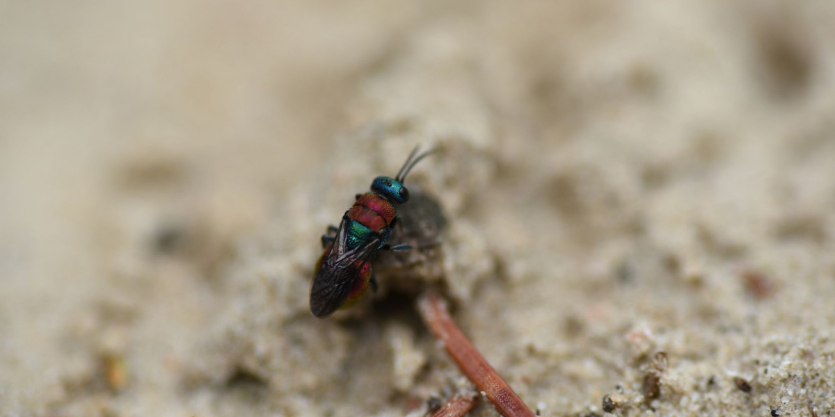 Goldwespen der Gattung Hedychrum sind häufig an den Nestern von Grabwespen zu beobachten. Sie versuchen, darin ihre Eier abzulegen.