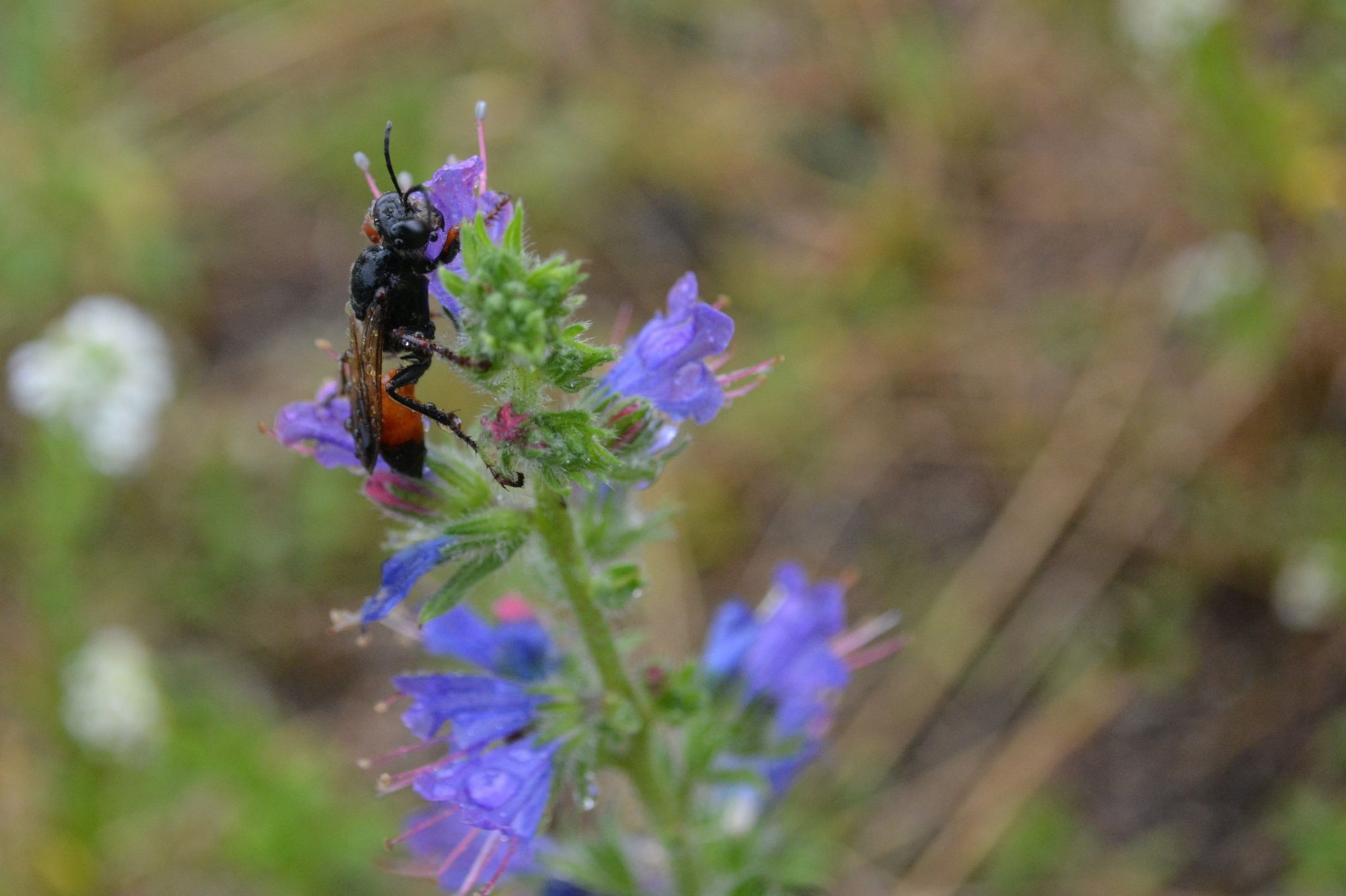 Blutbienen (Sphecodes) sind deutlich an ihrem rötlichen Hinterleib erkennbar.