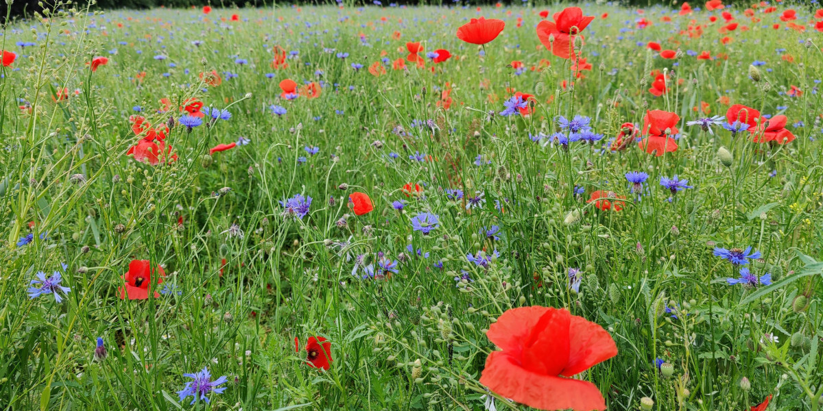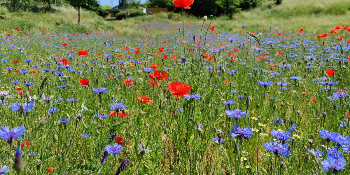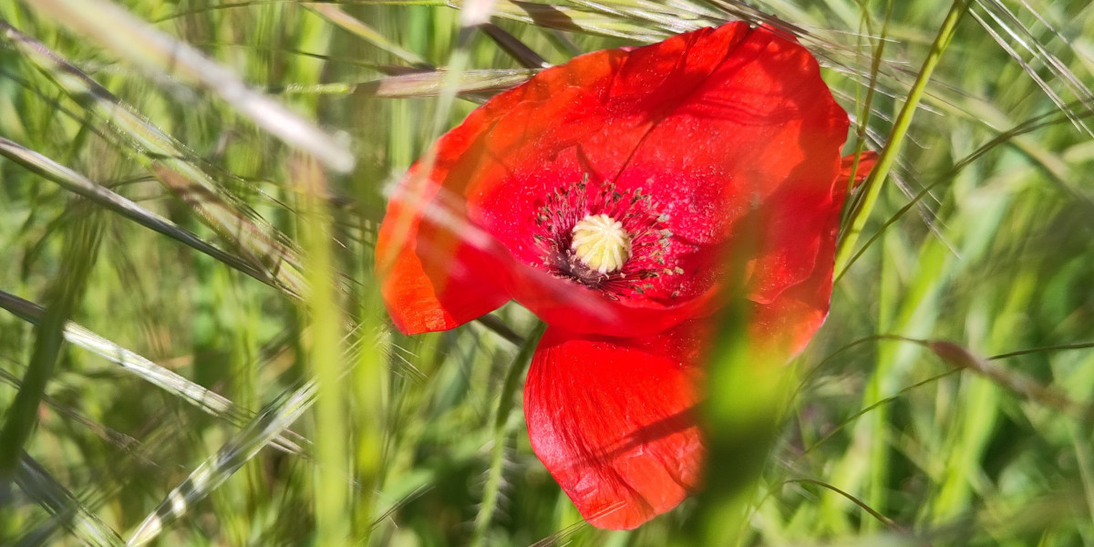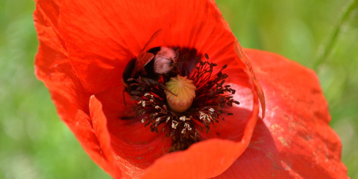 Doch damit Wildbienen und andere Bestäuber bereits im Etablierungsjahr auf den Flächen Nahrung finden können, haben wir unserem Saatgut sogenannte Akzeptanzarten beigemischt. Hierbei handelt es sich um einjährige Pflanzenarten, die neben Nektar und Pollen vor allem farbenfrohe Blütenaspekte hervorbringen. Eine der wohl bekanntesten Arten ist der Klatschmohn (Papaver rhoeas).