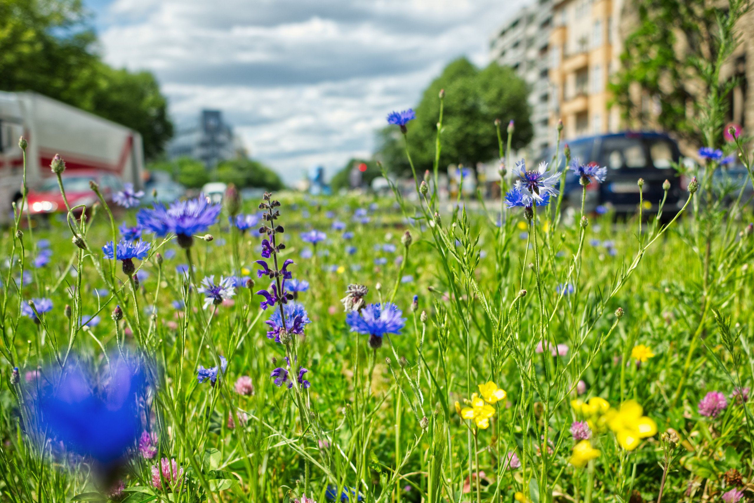 Seit 2018 setzen wir in Berlin Maßnahmen zum Wildbienenschutz um. Dabei werden wir maßgeblich von der Senatsverwaltung für Mobilität, Verkehr, Klimaschutz und Umwelt gefördert und arbeiten eng mit ihr zusammen. Bislang haben wir in allen Berliner Bezirken auf über 46.000 Quadratmetern mehr als 90 Wildblumenwiesen und andere Wildbienenflächen angelegt.