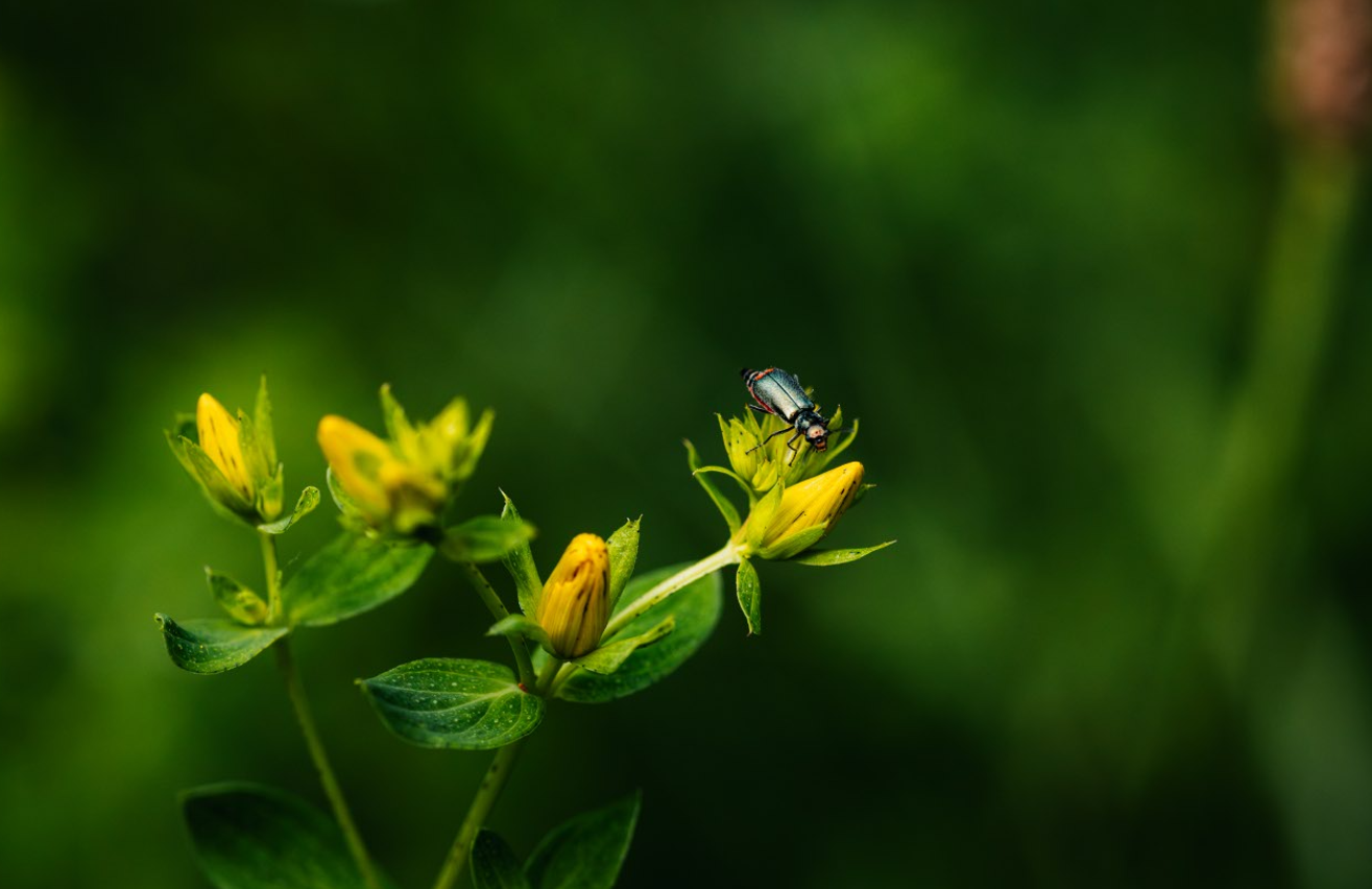 Foto: Echtes Johanniskraut (Hypericum perforatum) mit Zweifleckigem Zipfelkäfer (Malachius bipustulatus)
