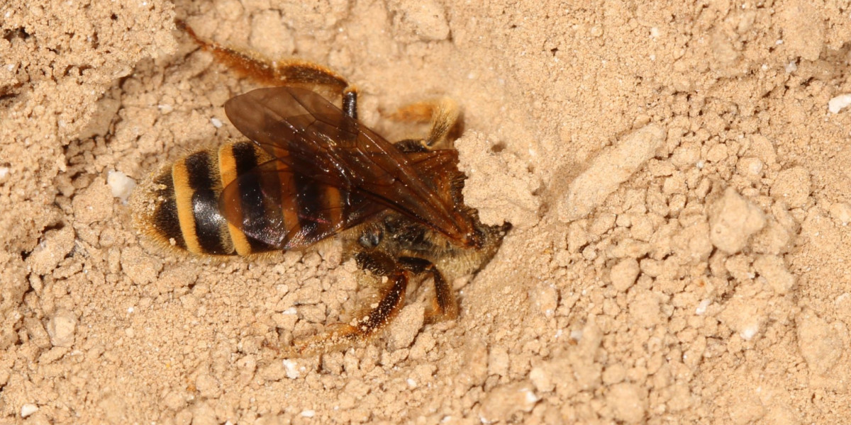 Vegetationslose oder –arme Stellen kommen auch in Gärten vor, gerade an häufiger genutzten Ecken oder entlang von Wegen. Wenn Sie diese schütter bewachsenen Stellen tolerieren und bestenfalls regelmäßig von Aufwuchs befreien, bieten Sie der Gelbbindigen Furchenbiene und vielen weiteren bodenbewohnenden Wildbienenarten eine Nistmöglichkeit. Bereits kleinere Flächen können vielen Wildbienen als Nistplatz diesen! Die Art nistet auch sehr gerne in senkrechten und südexponierten offenen Böschungen und Abbruchkanten.