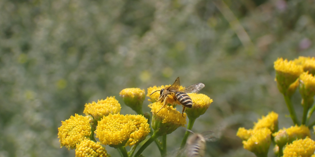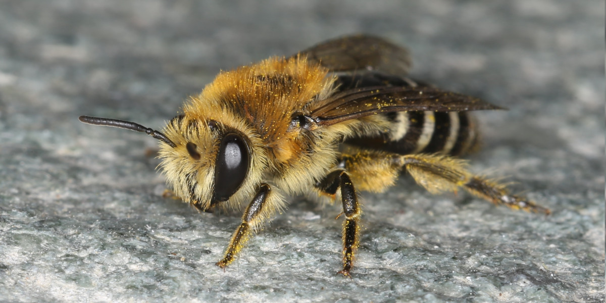 Um unsere Wildbiene des Monats Juli zu entdecken, muss man schon ein bisschen genauer hinschauen, denn mit einer Körperlänge von 7 bis 9 Millimetern ist die Gemeine Seidenbiene (Colletes daviesanus) wahrlich kein Riese. Der hellbraun behaarte Brustteil (Thorax) sowie die breiten, hellen Haarbinden an den Endrändern der Hinterleibsegmente sind bei Weibchen charakteristisch, allerdings ist die Art im Feld nur sehr schwer von anderen Vertretern derselben Gattung (wie beispielsweise C. fodiens, C. similis) zu unterscheiden.